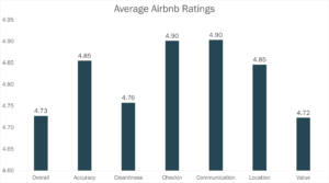 This post looks at the average overall rating and the average of each category rating. It also looks at how ratings on Airbnb tend to skew high and what is considered a good overall rating.