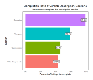 In this analysis text mining was performed on Airbnb descriptions to uncover which sections were being used by hosts and what the common elements of a description are. - 17 Reasons for Bad Reviews on Airbnb