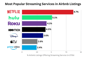 Which streaming services does Airbnb offer For this post I wanted to investigate what streaming services Airbnb offers. To answer this, I analyzed 270k US listings sourced between December 2022 and March 2023. Data was sourced from Inside Airbnb, an activist project with the objective to provide data that quantifies the impact of short-term rentals on… Read more: Best Streaming Services for Airbnb According to Hosts - Airbnb Occupancy Rate: The Most Important Factors Ranked